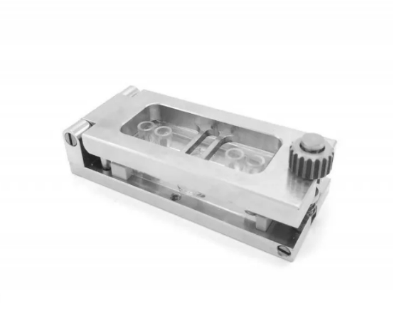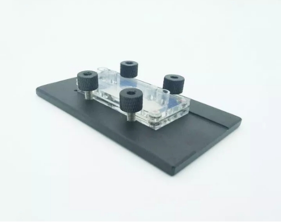 顯微鏡夾具款式三:外觀尺寸55X95x5mm,可固定寬25mm的芯片