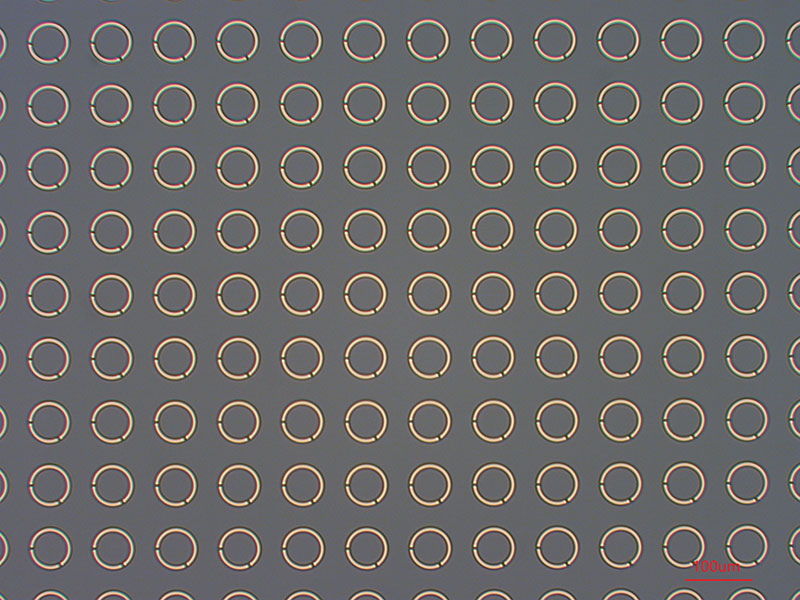 圖中是在PET材料上制作的環形電極,電極縫隙開口2μm,電極厚度120nm